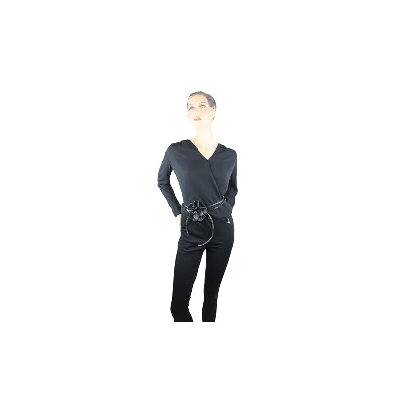 collezione alessandro Binding Belt Flower Leather Strap with Genuine Leather Blossom, black