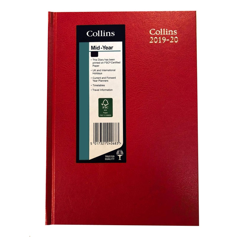 Collins 38M A5 Week to View 2019-2020 Desk Diary - Red