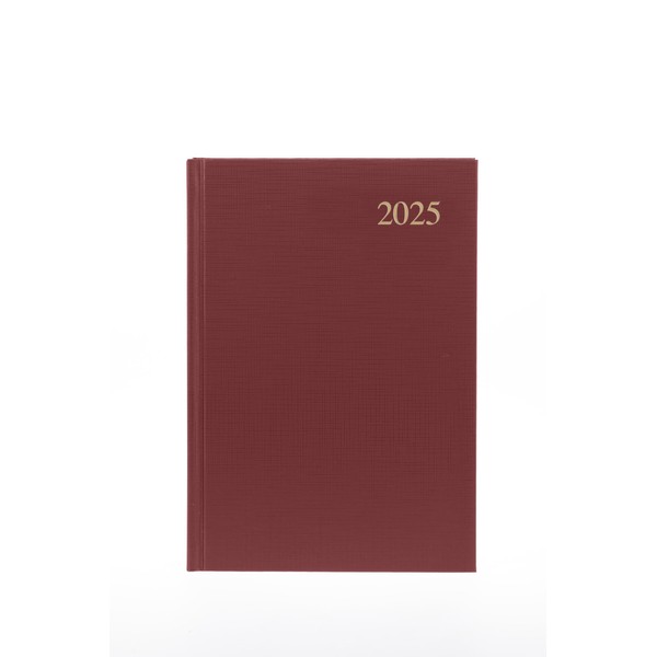 Collins Essential 2025 Business Diary - A5 Day to a Page Planner with Leathergrain Hardback Cover - Maroon - ESSA51.78-25
