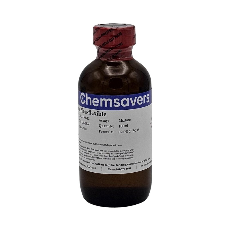 Collodion, Non-flexible, 100ml (for Photographic Applications) For Research & Development Not for drug, clinical use in humans, for food or food additive use Specifications: Appearance (Color) Colorless to pale yellow Appearance (Form) Liquid Identification A To Pass Test Identification B To Pass Test Specific Gravity @ 25 Deg C 0.765 - 0.775 Acidity To Pass Test Alcohol Content 22.0 - 26.0% Assay (by Weight of Pyroxylin) Not less than 5% Solvent-based, non-plasticized, cellulose nitrate Solution with very fast curing; non-brittle with 10% elongation. Ingredients: Ethyl ether, ethanol, Less than 7% nitrocellulose, colloided, granular. CAS: 9004-70-0 FORMULA: N/A