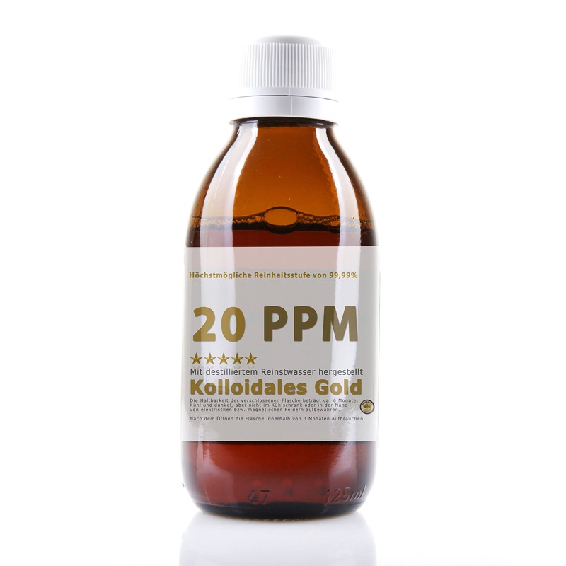 Colloidal gold 20PPM - gold water highly concentrated (purity level 99.99%) an old tried and tested elixir used for centuries in Indian healing. Made with gold electrodes at the highest possible purity of 99.99% from electrolytic manufacturing.