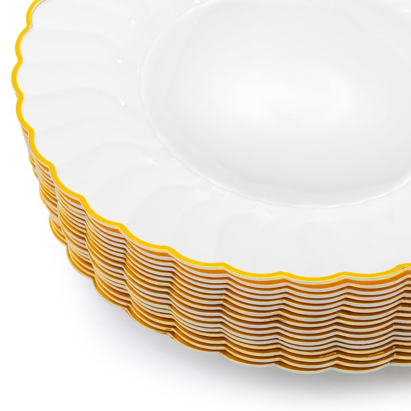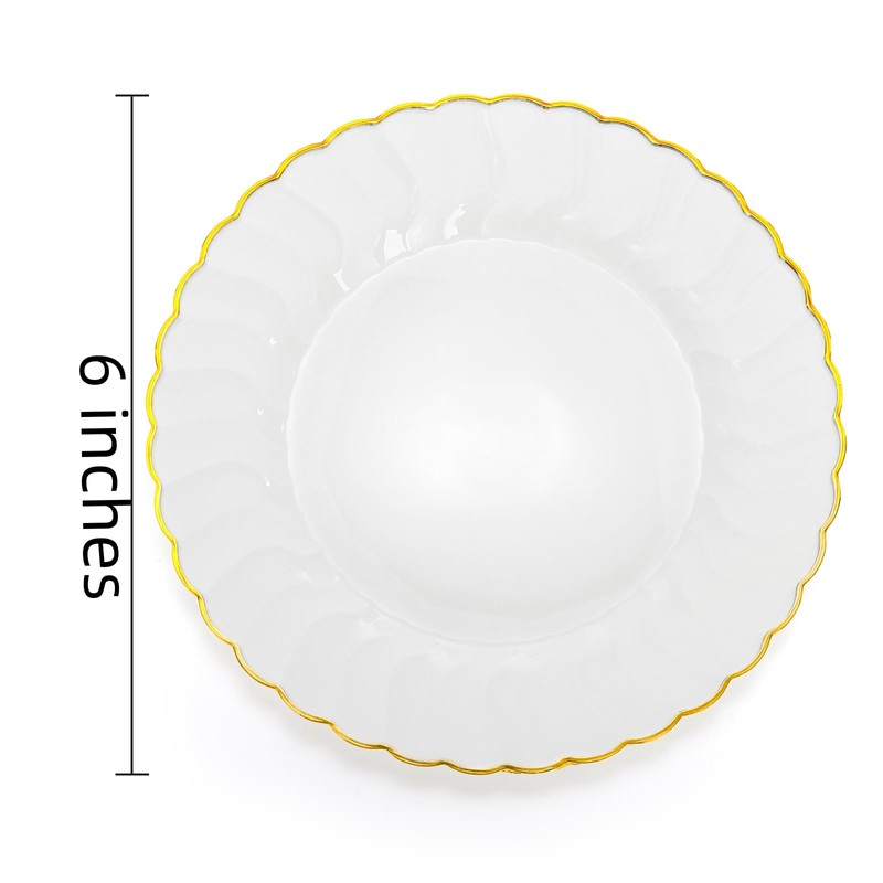 - Visual Appeal: The white color provides a clean and elegant backdrop, while the gold rim adds a touch of glamour. The white color with golden rim brings a touch of sophistication and elegance to your table setting, enhancing the visual appeal of your dishes.