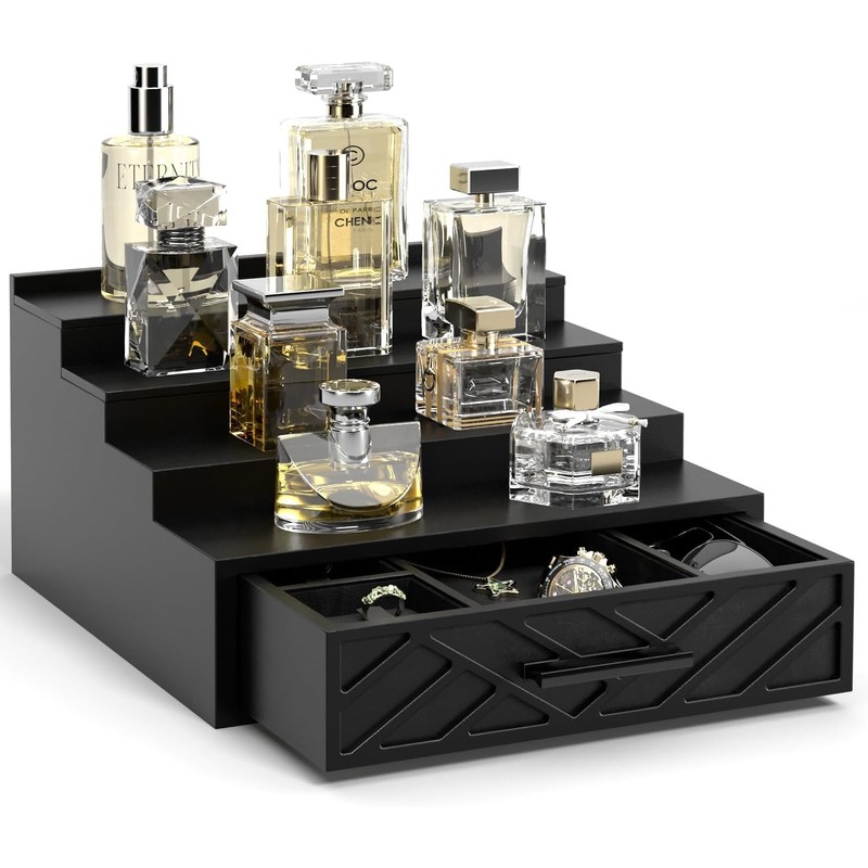 Cologne Organizer for Men - Drawers & Dresser Organizer Countertop - Perfume Holder Stand For Men Organizador De Perfumes - by NovaHavensNest (Black-4 Tier)