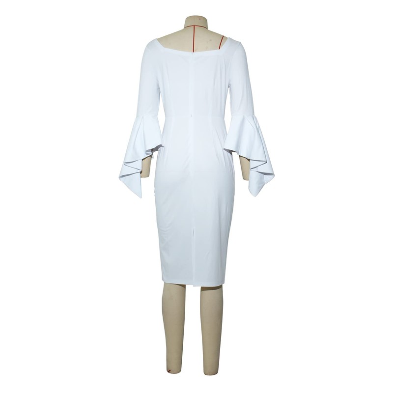 - Design: Elegant Slim style, Knee-Length design with flare sleeve, solid color, 3/6 Length Sleeves, high waist highlight your body curves. Concise White solid color highlights a mature generous sense. Comfortable to wear, unique style, make you more beautiful, fashion, sexy and elegant.