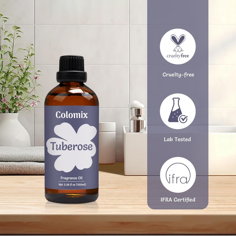 Colomix Premium 100ml Tuberose Fragrance Oil, Essential Oils for Diffusers for Home, Scented Oil for Candle Making, Soap Supplies and Tubetose Pefume and More, Long-Lasting Scent Gift Oil
