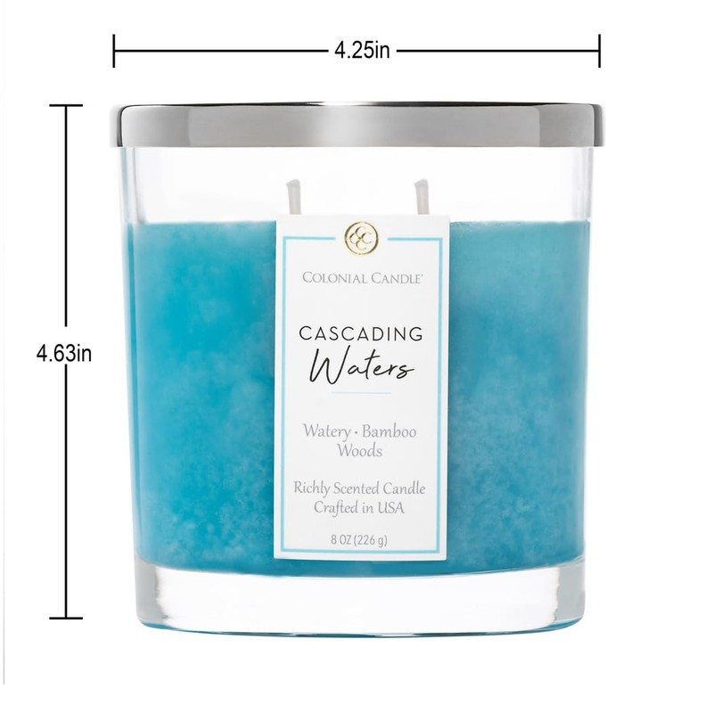 Colonial Candle Cascading Waters Scented Candle Jar, Highly Fragranced Candles for Home Scented, Mottled Wax Candle, 2 Wick, 8 oz - Made in The USA