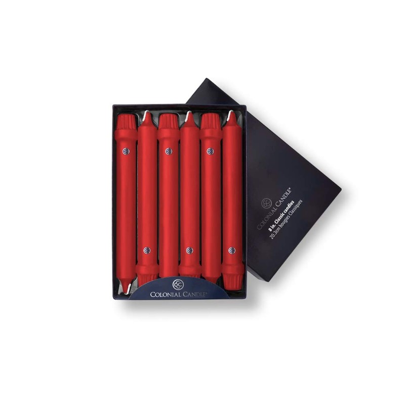 Colonial Candle Classic Taper Candle, 8 In, Red