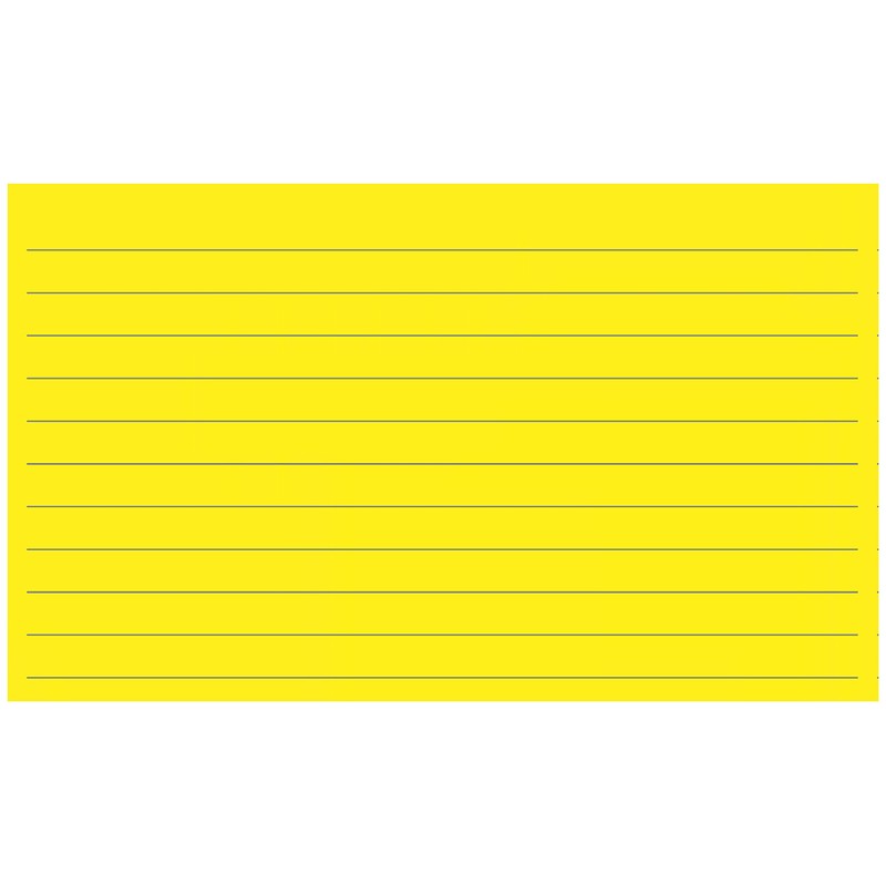 - 150 lined 3"x5" cards per pack ; 10 lines ; Available in a variety of colors