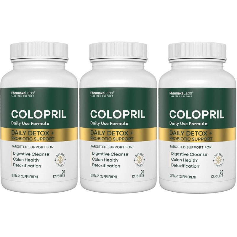 Colopril Colon Cleanse Dietary Supplement - Supports Cleansing of Bowels & Digestive Tract - Eases Constipation - Ginger Root, Lactobacillus, Psyllium & Magnesium Oxide - 90 Capsules (Pack of 3)