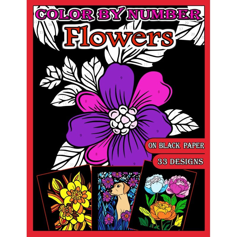Color by Number Flowers: Adult Coloring book with Bold, Easy and Relaxing Coloring Pages on Black Paper (Color by Number on BLACK Background)
