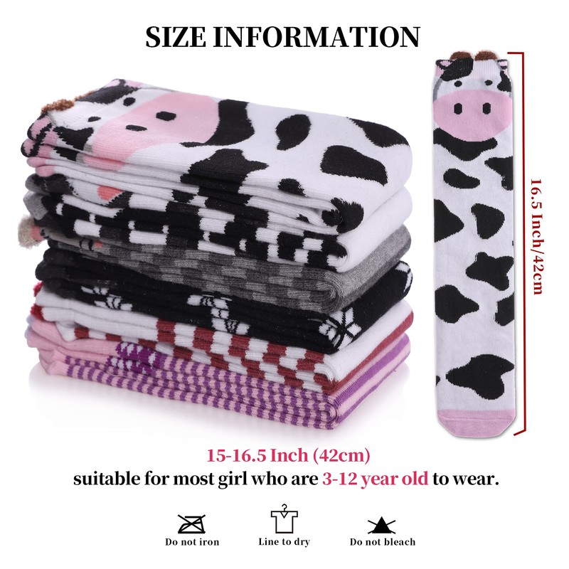 - SIZE - Length : Cartoon colorful socks are approximately 16 Inch, suitable for most girls who are 3-12 years old to wear,There are 6 pairs of socks in one. The socks are whether over calf or knee depends on how long your girl's legs are.