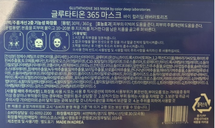 Color Deep Glutathione 365 reusable mask pack 30 sheets 1 box E / 컬러딥 글루타치온 365 뽑아쓰는 마스크팩 30매 1통E