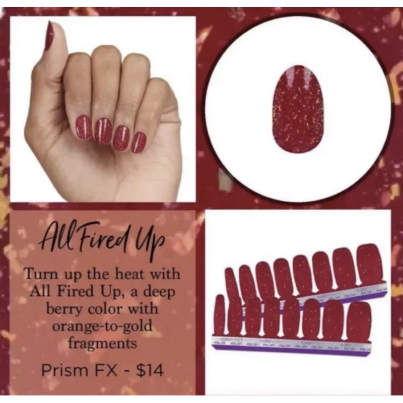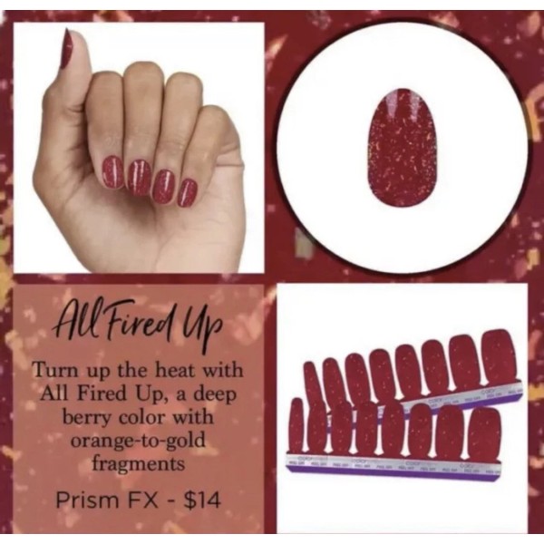Color Street ALL FIRED UP Nail Polish Strips Red Glitter Prism FX.