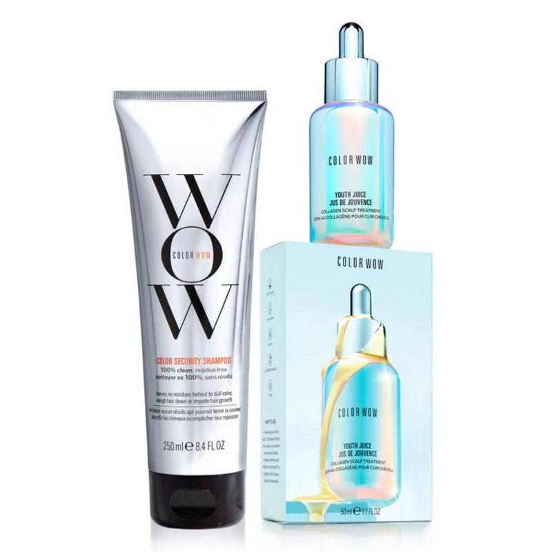 The Color Wow Optimal Scalp Treatment Duo Bundle is designed to rejuvenate and maintain a healthy scalp. This bundle combines two powerful products that work together to cleanse and nourish your scalp, promoting optimal hair health. The Color Security Shampoo gently cleanses without leaving residues, while the Youth Juice Collagen Scalp Treatment revitalizes and hydrates the scalp, ensuring a balanced and healthy environment for hair growth. Perfect for those seeking a comprehensive scalp care routine, this duo offers a solution for maintaining vibrant and healthy hair. What is included in Color Wow Optimal Scalp Treatment Duo Bundle? • Color Security Shampoo 250ml • Youth Juice Collagen Scalp Treatment 50ml What are the features and benefits of Color Wow Optimal Scalp Treatment Duo Bundle? Color Security Shampoo: This shampoo is formulated to cleanse the hair and scalp thoroughly without leaving any residues that can weigh hair down or cause irritation. It is safe for all hair types and color-treated hair, ensuring that your hair remains vibrant and healthy. Youth Juice Collagen Scalp Treatment: This treatment is enriched with collagen to nourish and hydrate the scalp, promoting a healthy environment for hair growth. It helps to improve scalp elasticity and moisture levels, reducing dryness and flakiness. Who is Color Wow Optimal Scalp Treatment Duo Bundle for? This product is for anyone looking to maintain a healthy scalp and vibrant hair, especially those with color-treated hair.