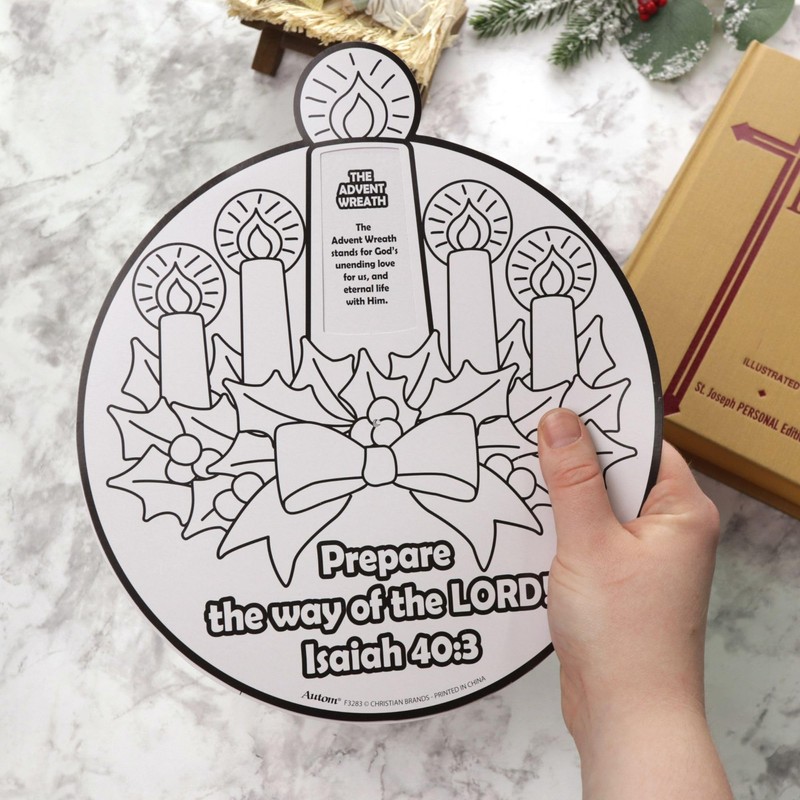 Color Your Own Advent Calendar, Religious Christmas Crafts, Prepare Way of the Lord, 9 Inch Diameter