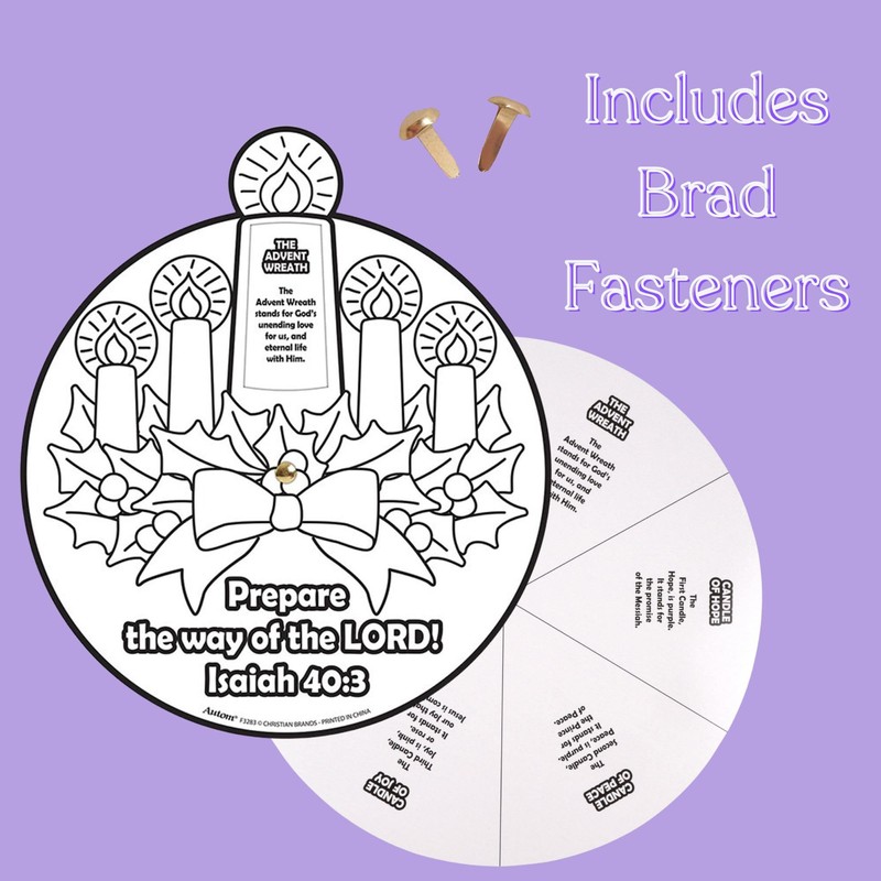 - Each Advent Wreath Wheel comes with designed artwork and an editorial.