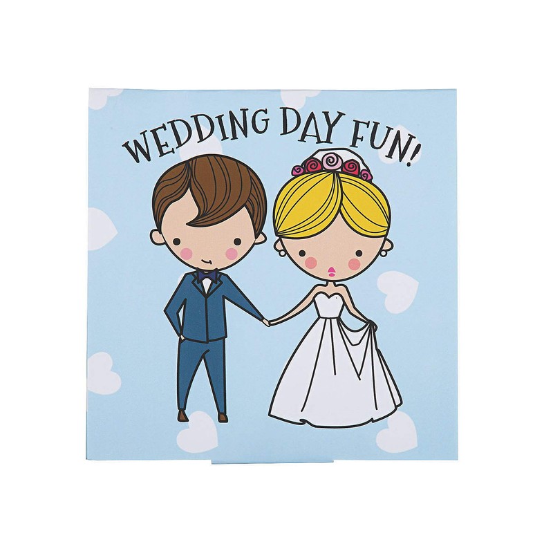 - Make the cool kids' table even cooler with these wedding activity sets. Keep kids busy and entertained with a variety of coloring activities mazes puzzles and games all kept in an envelope. All you'll need is to provide some crayons markers or colored pencils and they'll be set during your wedding reception. Includes 1 envelope and 8 pages per set. Cardstock and paper. Envelope 6 x 6; pages 3 1/2 x 3 1/2. Simple assembly required.