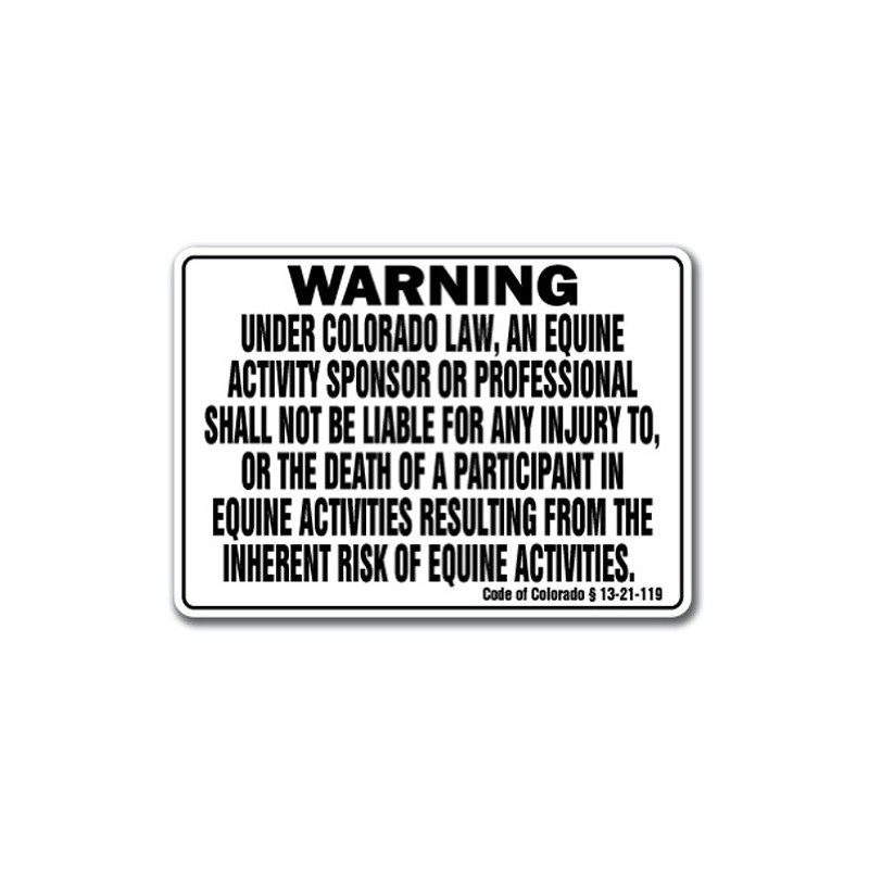 Colorado Equine Sign Activity Liability Warning Statute Horse Farm Barn Stable