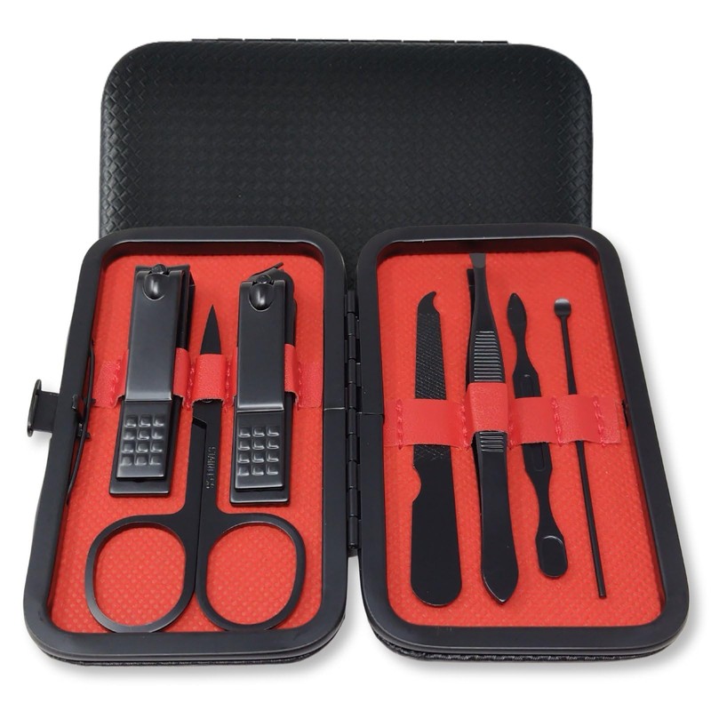 COLORBIRD ネイルケアセット 爪切り ネイルケア 爪やすり 甘皮処理 眉毛 ハサミ 毛抜き 耳かき BLACK RED (7-RED)