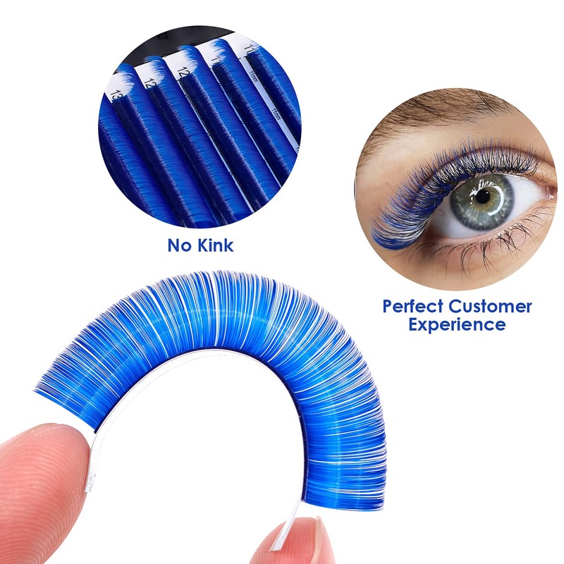 Colored Eyelash Extensions Easy Fan Blue 9-16mm Mixed D Curl Easy Fanning 0.07mm Self Premade Volume Lash Supplies