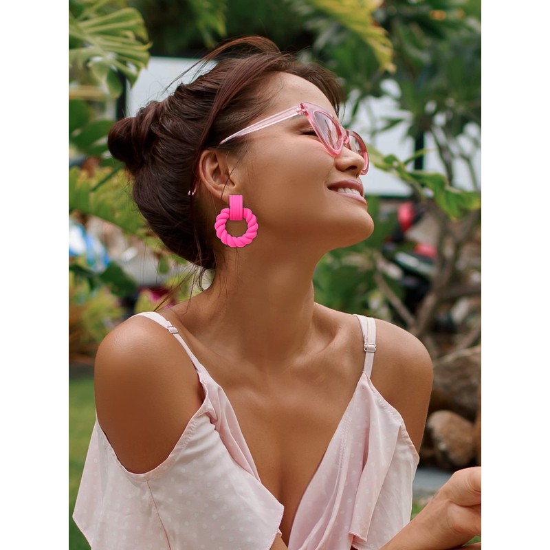 Colorful Acrylic Square Earrings Twisted Rope Geometric Circle Rectangle Earrings Lightweight Statement Earrings for Girls(Hotpink)