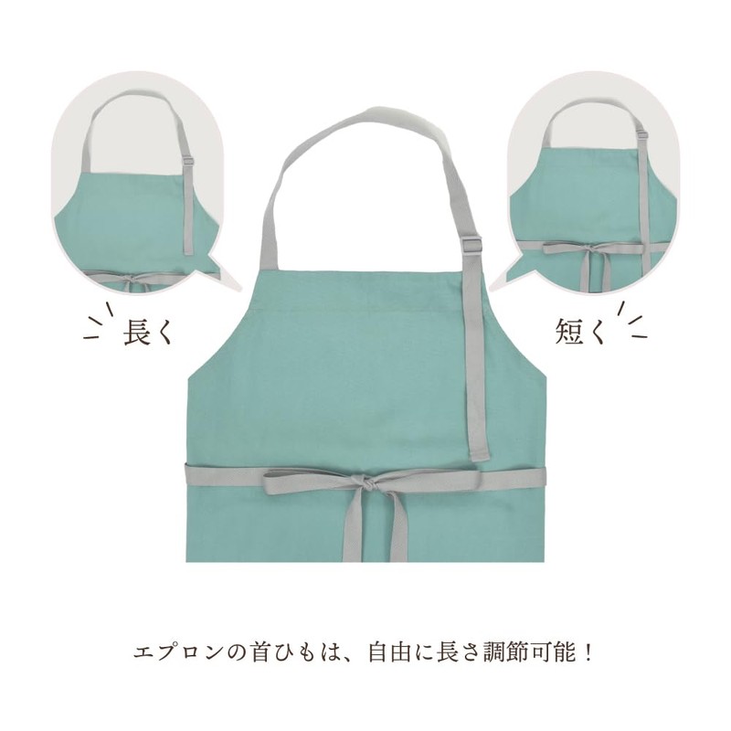 - The length can be adjusted by the adjuster on the neck strap. Name tag inside apron