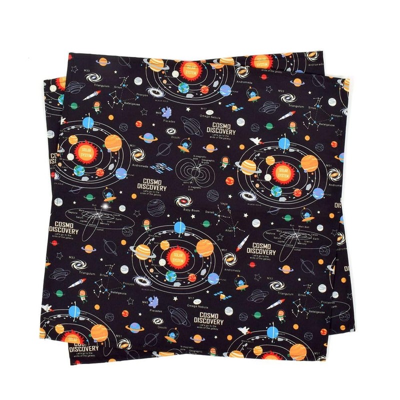 COLORFUL CANDY STYLE Lunch Cloth, For Boys, Standard, PET, Solar System Planets and Cosmo Planetarium, Black