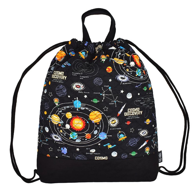 COLORFUL CANDY STYLE N0446700 Boys Nap Sack, Elementary School Students, Stylish, Quilting, Kindergarten Commute, School Commute, Includes Handle, Solar System Planets and Cosmo Planetarium(Black)