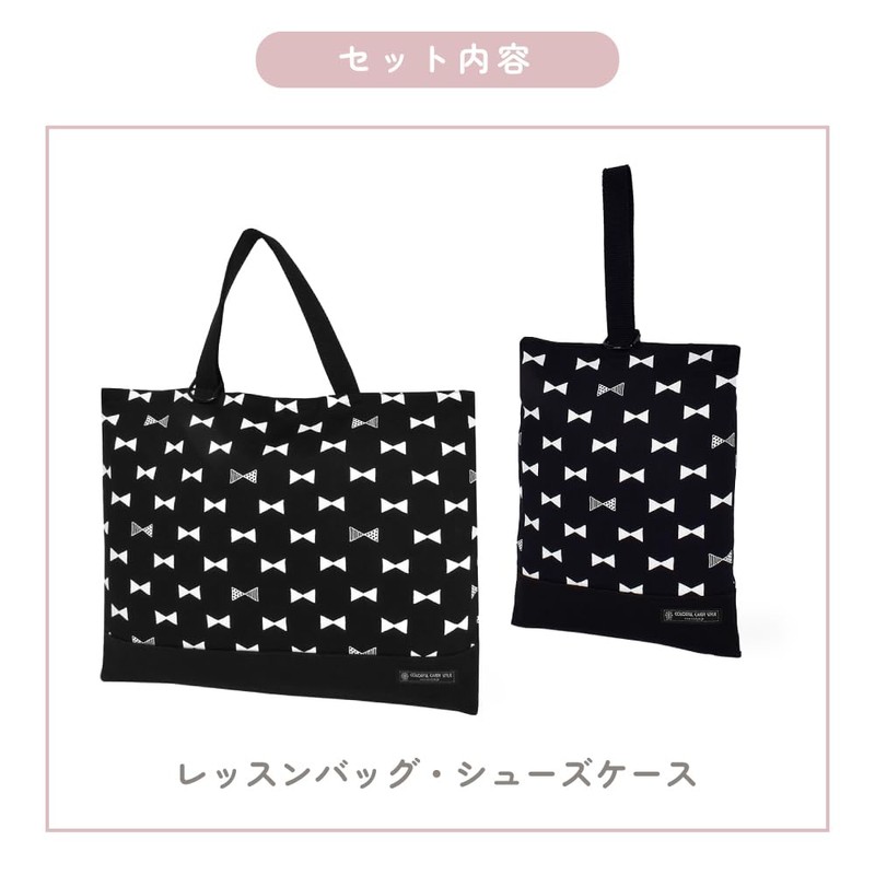 COLORFUL CANDY STYLE NK400400 Lesson Bag, Shoe Case, Set of 2, Lesson Bag, Shoe Case, Preparation for School Admission, Cute Girls, Ribbon Silhouette