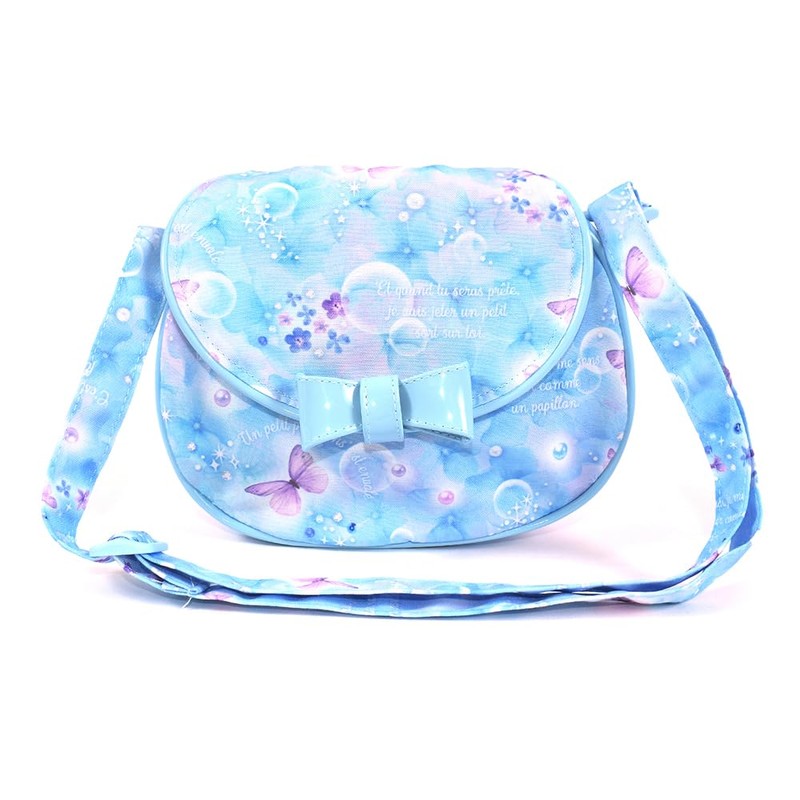 - A round pochette that is even more cute to hold. Ribbon charm accents We carefully selected the round design to make it look even more cute when a girl gets on her shoulder. The front has a ribbon charm that girls love. Cute enough to be proud of