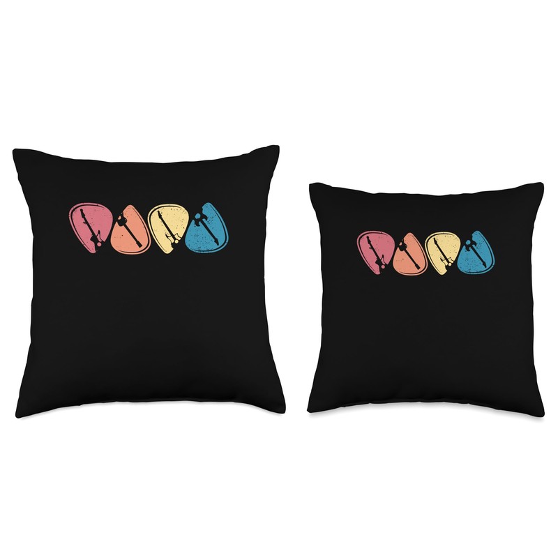 Colorful Guitar Picks Retro Music Vibe Throw Pillow