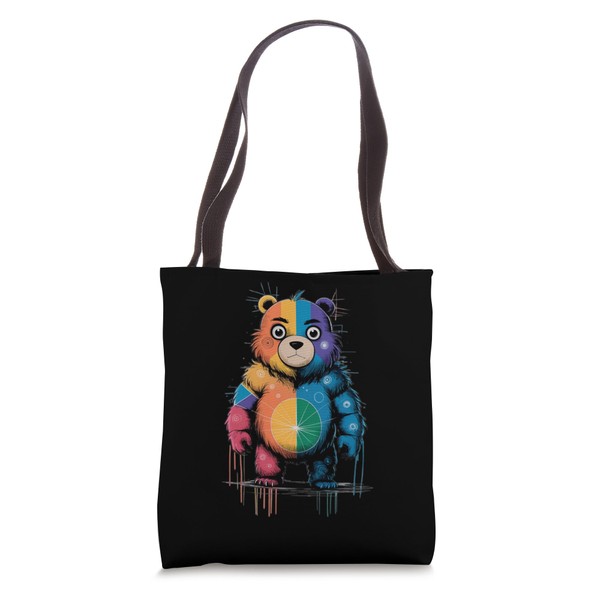Colorful Patchwork Teddy Bears, Quirky and Playful motif Tote Bag