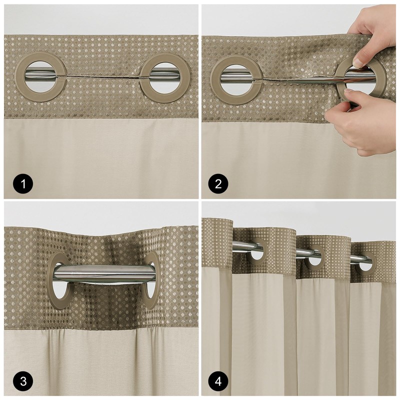 - HANG IN SECONDS: No need to remove the shower curtain rod or buy extra hooks. We use no hook design to make it easier to hang and slide more smoothly, giving you worry-free installation.