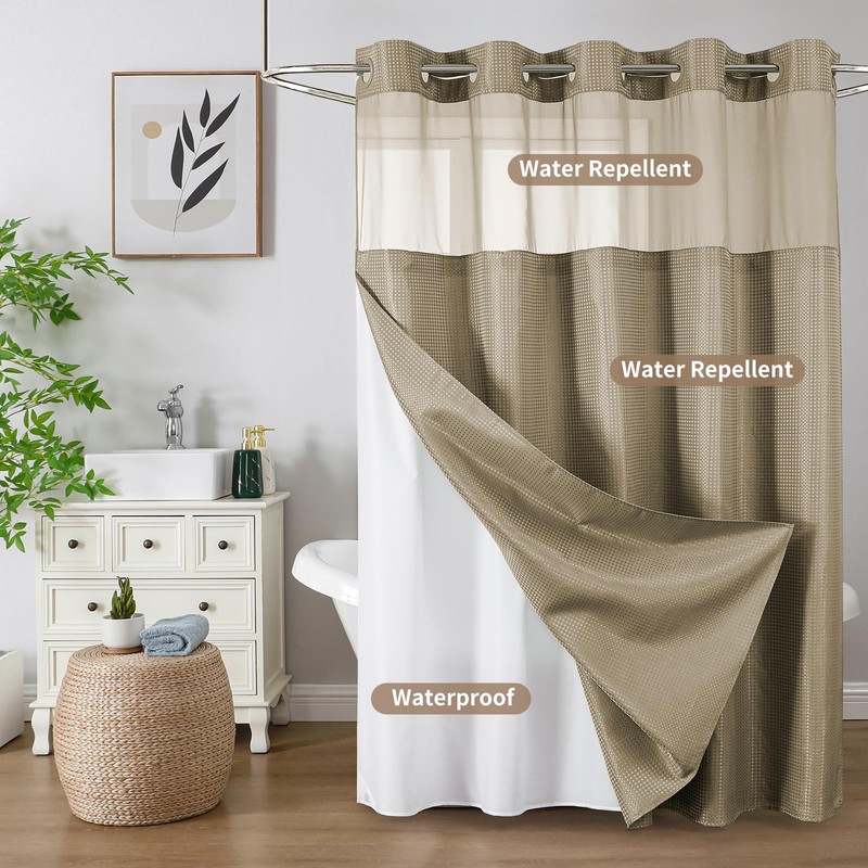 - WATER REPELLENT & WATERPROOF: We use water repellent waffle fabric and double-sided waterproof liner, allowing water droplets to roll off quickly without penetrating and soaking the waffle block fabric, keeping the bathroom dry.