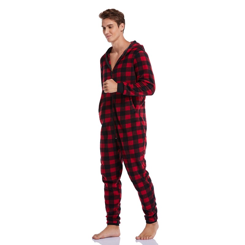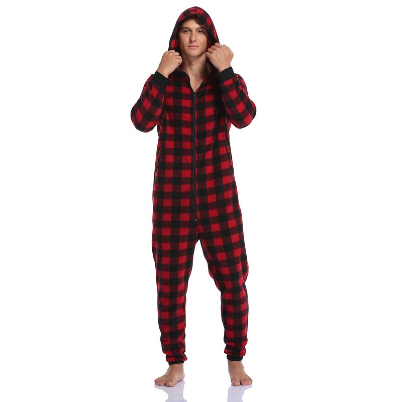 - Hoodie And Zipper Design: This one-piece pajama set features a hoodie, shelter from the wind and keep warm. Full zipper in front for easy wear, fitted with elastic cuffs at the wrists and ankles for an even better fit. Classic red and black plaid match colors, lovely hues to upgrade your nightwear style. Two side pockets to store your phone, keys or other small items