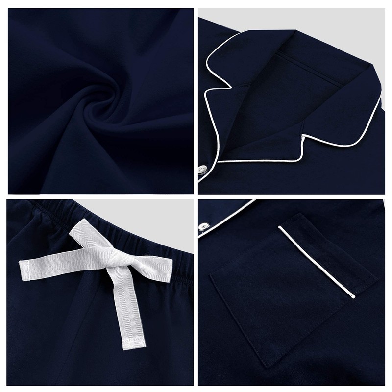 - Classic Casual Style: The button-up pjs top features notched collar and chest pocket design, two side pockets, contrast piping details and elastic waist band with adjustable drawstring and wide leg openings for a perfect and relaxed fit