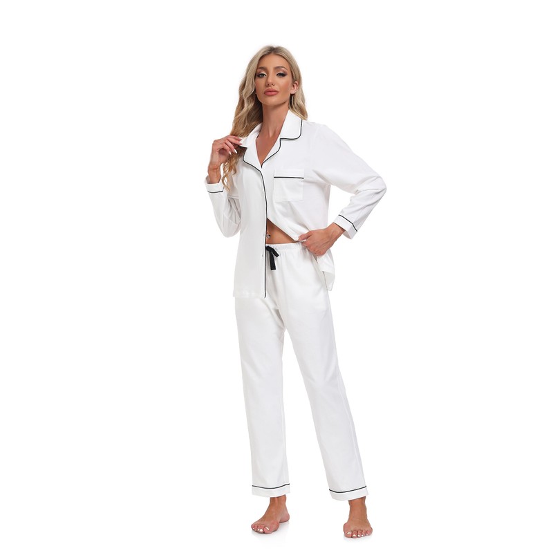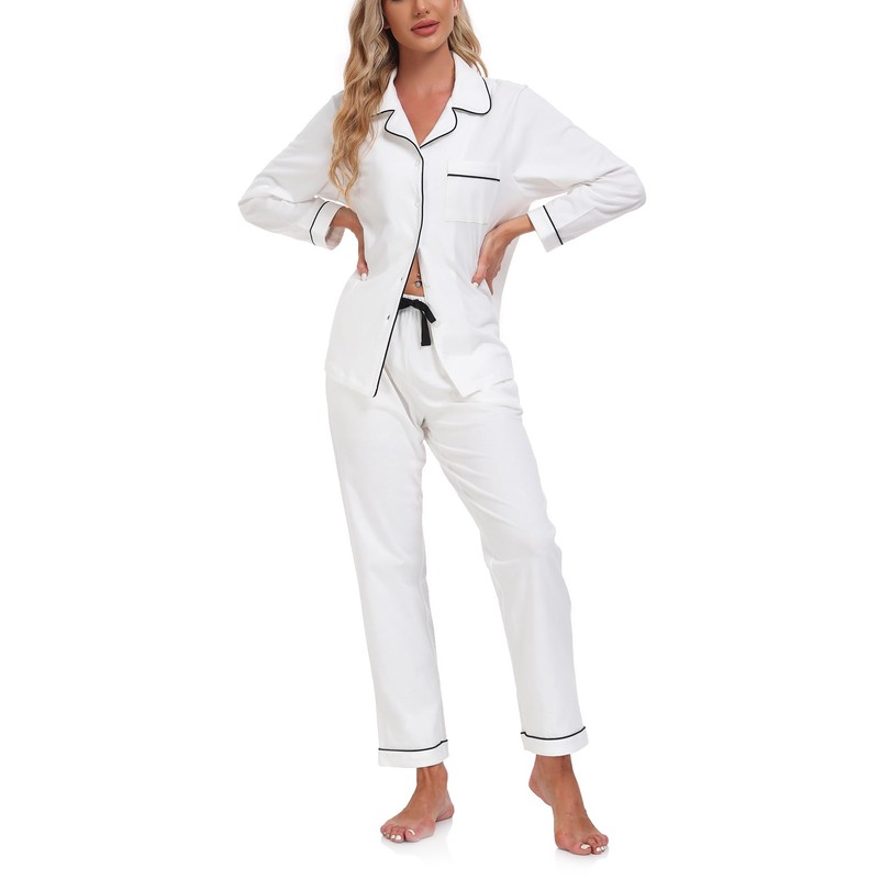 - Classic Casual Style: The button-up pjs top features notched collar and chest pocket design, two side pockets, contrast piping details and elastic waist band with adjustable drawstring and wide leg openings for a perfect and relaxed fit