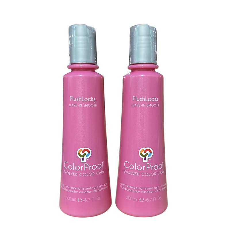 ColorProof Plush Leave-In Smooth 6.7 oz. Pack of 2. Smoothing treatment keeps hair smoother longer and sleek while providing instant defrizzing and long term conditioning. Exclusive oils, including Abyssinian and Camellia. Helps reduce blow-dry time and defies frizz for a luminous, silk-like finish with color and heat protection.