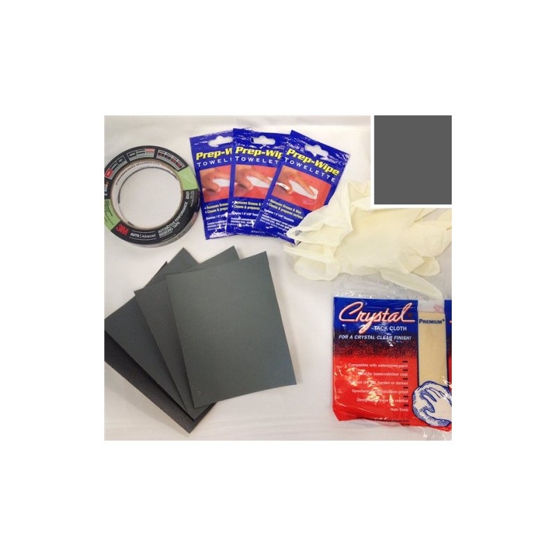- The All-Inclusive Package includes three touch-up bottles containing a full 2 ounces of paint each - primer, factory-matched color and high-quality clearcoat for a long-lasting, durable finish. Also included - 2 Prep Wipes to remove wax or grease, latex gloves, 3M sandpaper combo pack, 3M masking tape, tack cloth and polishing compound for the best results possible. See menu above for more package options.
