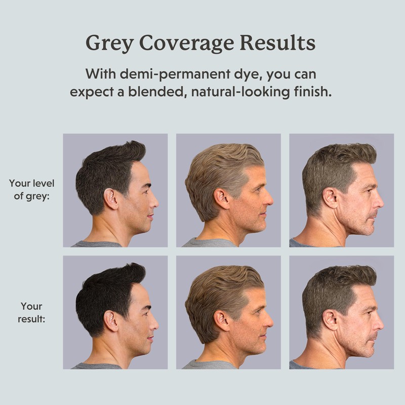 - KEY BENEFITS. Natural-looking grey coverage, offers up to 100% grey coverage, professional-grade men’s hair and beard colour, easy-to-apply, everything you need in one discreet box
