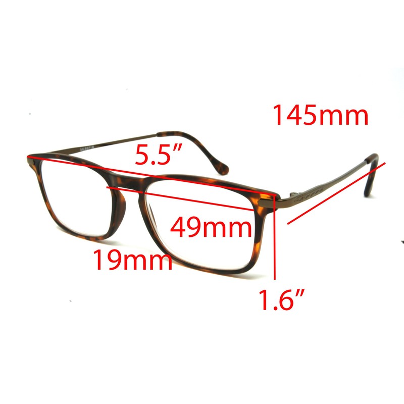 - 49mm-19mm-145mm, 5.5" Width ,1.60" Height, 5.75" Temple