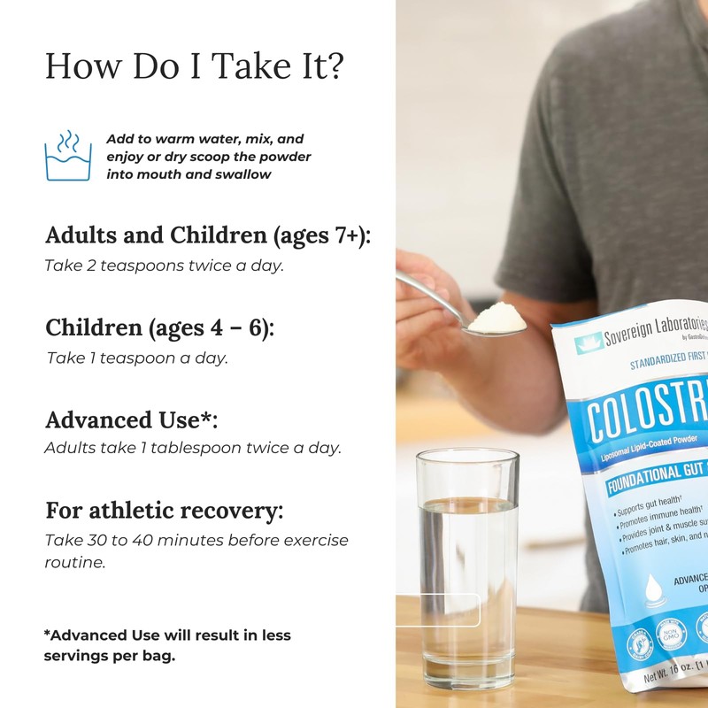 If You Havent Tried Colostrum-LD, You Havent Tried Colostrum Sovereign Laboratories Colostrum-LD is the worlds highest quality bovine colostrum, clinically proven up to four times more effective than other brands. The LD Difference:Colostrum-LD remains biologically active at the cellular level with maximal biological effectiveness. Certified High Purity, High Quality Colostrum for Maximal Effectiveness Colostrum-LD is the only colostrum certified to contain a minimum of 25-30% Immunoglobulins, 1.5% Lactoferrin, 1.5% Growth Factors and 4.5-5% Proline Rich Polypeptides (PRPs).What is Sovereign Laboratories Liposomal Technology?Sovereign Laboratories proprietary Liposomal Delivery (LD) is a delivery system that allows colostrum to readily dissolve in liquids while also ensuring the colostrum will bypass the stomach acids, enabling it to reach the bowel wall intact. Liposomal Delivery makes colostrum up to 1,500% more bioavailable than other colostrum products.Doctor RecommendedMost physicians agree that Leaky Gut is a primary cause of chronic disease and Colostrum-LD may help to heal and prevent Leaky Gut more effectively than other colostrum brands thanks to Sovereign Laboratories LD (Liposomal Delivery) technology. Buy With Confidence - Satisfaction GuaranteeAll Sovereign Laboratories products are backed by a 1-year, money back guarantee. If you are not satisfied for any reason, contact us at any time within 1 year from the date of purchase for a full refund.