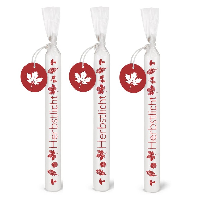 Size: 20 cm x 2.2 cm. Weight: 68 g. Material: paraffin with the words 'Herbstlicht'. Packaging: cello with label on hemp ribbon for personal labelling
