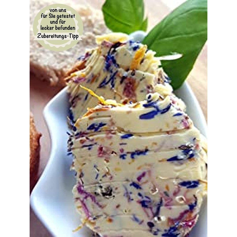 - 100% colourful organic flower mixture - very popular in vegan and vegetarian cuisine. As a splash of colour in rice or vegetable dishes or for summer plate dishes. Great as a colourful topping for bowls or desserts, also beautiful on muffins, cakes or a colourful spring bread!