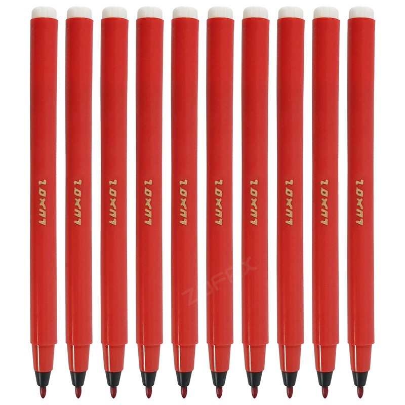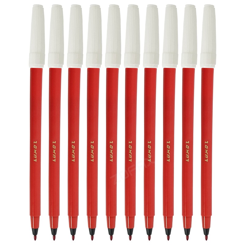 Colouring Felt Tip Pens, RED, VAI-HCR Single Colour Pens, Pack of 10, Ideal for Write Mark Draw Sketch, Office School Home Use, iVAIDEX Black Ball Pen