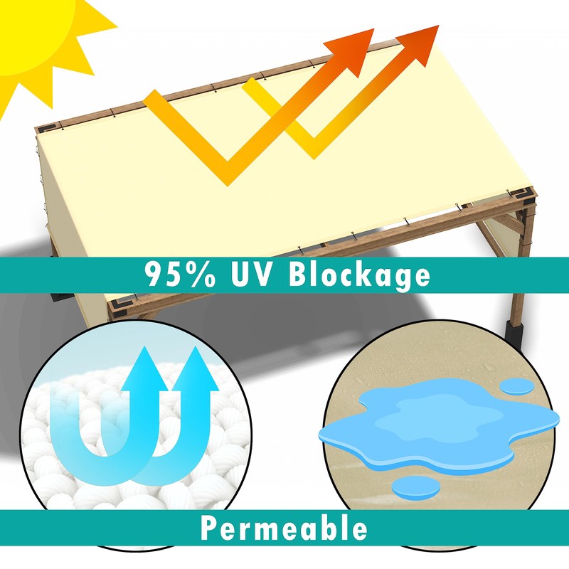 - ★ UV and Sun Protection Permeable Material: Stay protected from the sun's harmful rays with our Pergola Cover, blocking up to 95% of UV rays. Its breathable fabric allows air and water to pass through, ensuring comfort in any season.
