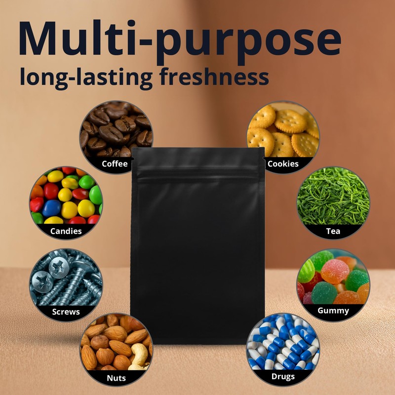 - PERFECT FOR LONG TERM FOOD STORAGE - the mylar design keeps contents inside fresher for longer compared to a regular ziplock bag! You can store coffee, rice, beans, tea leaves, herbs, spices, and much more for longer periods of time without them spoiling. This mylar bags for food storage can store coffee, beans, candy, sugar, rice, baking, cookies, tea, nuts, dried fruit, dried flowers, powder, snack, spices, and much more food or decorations.