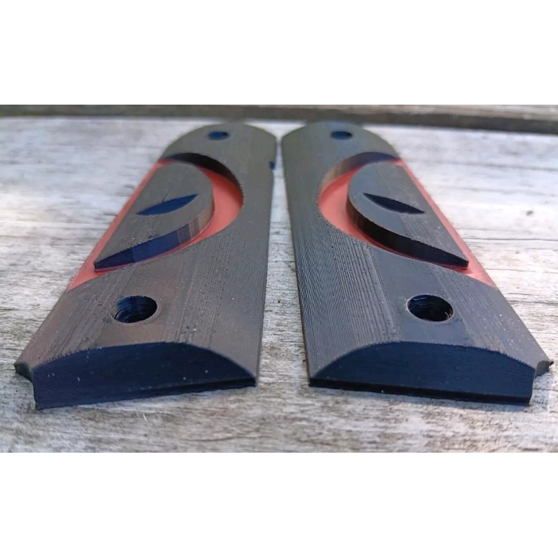 Enhance your full size Colt 1911 with these custom grips. They fit all 1911 clones like Kimbers, Springfields, and Colts. Lightweight yet durable, their sleek black color adds sophistication to your handgun. Easy to install, they perfectly fit full size 1911s. Made in the USA, these grips are a must-have for any gun owner's collection.