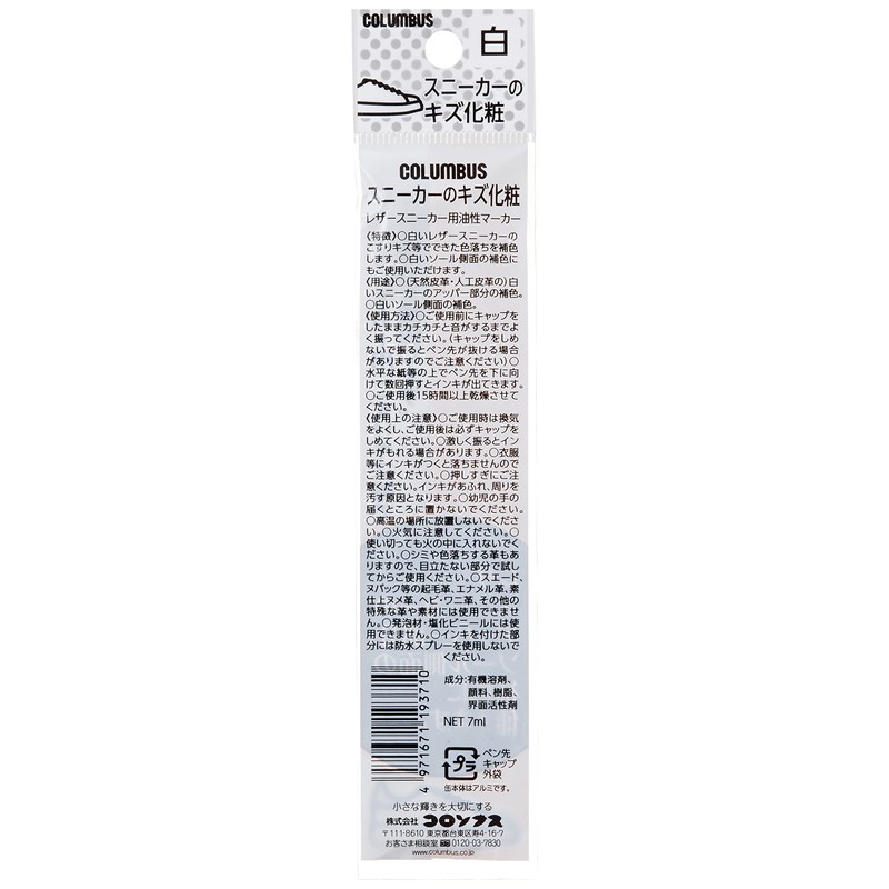 Columbus 26700071 Sneaker Scratch Makeup Permanent Marker for Leather Sneakers, White, 0.2 fl oz (7 ml), white