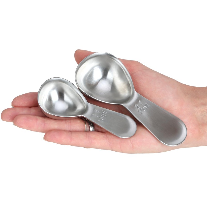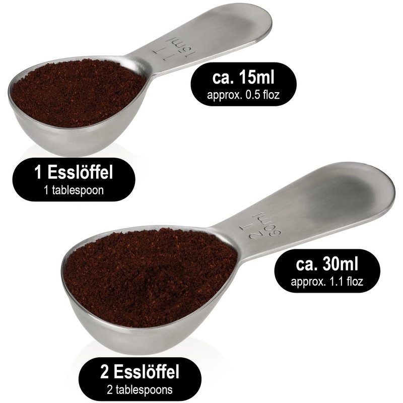 • TWO SIZES: Included are two coffee scoops in different sizes. The small spoon holds a volume of 15 ml while the large spoon can hold 30 ml